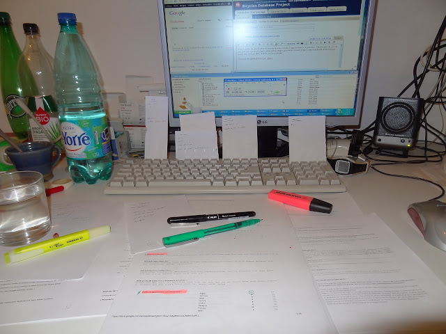 Des fiches avec des notes de partout, quelques tasses et c'est pas de l'eau que je mets dedans. Il y a aussi de la littérature: Funky Business et No Logo pour le marketing, financement... très enrichissant!